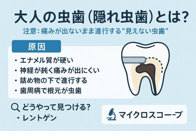 🦷 大人の虫歯(隠れ虫歯)とは?〜痛みが出ないまま進行する“見えない虫歯”に注意〜こんにちは、徳島市新浜町の新浜歯科医院です。大人になってから「気づいたら大きな虫歯になっていた…」「痛みがないのに、虫歯と言われた」という経験はありませんか?...